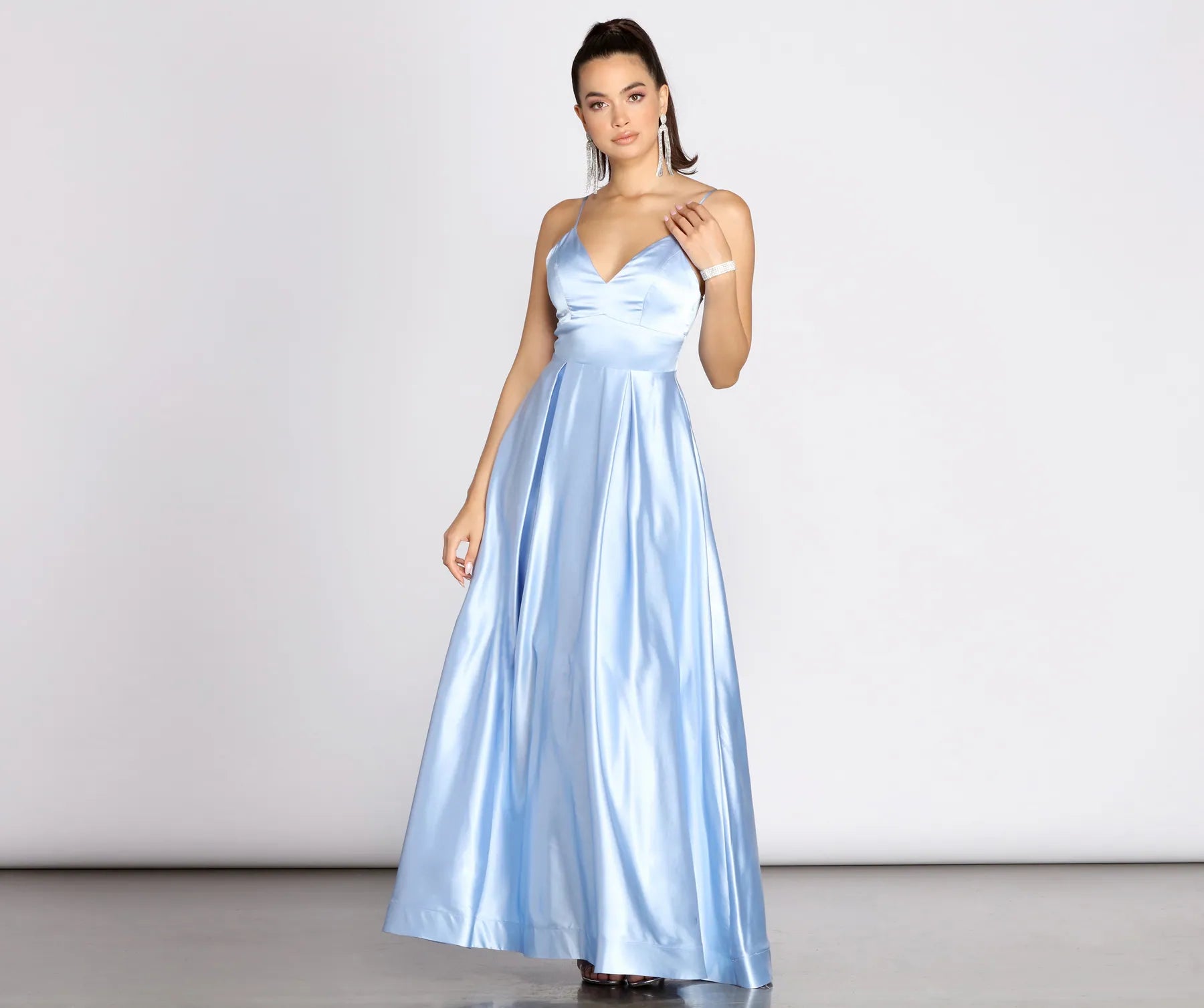 Lace-up in elegance as you create a twirl-worthy moment in our dreamy Idina ball gown. Pair her with glitzy heels and rhinestone accents to bring the shine to your evening!