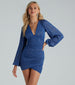 Shine the brightest this season sparkling in this glitter mesh party dress! It features slightly sheer peasant long sleeves. a sexy plunge V-neckline. ruched side seams that hug your curves along the bodycon silhouette. and a mini-length hem. Complete the look in statement earrings and strappy heels for a dressy celebration!