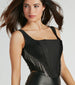 Get in the groove in this corset top made for every dance floor at parties or festivals! Features a sleek square neckline and flexible boning for a flattering and snatched fit. The dual chain fringe sides add a unique and eye-catching touch. while the cropped hem allows for easy styling and pairing with high-waisted bottoms.