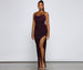 Make your mark with a captivating formal dress that brings the sophistication! Inez features a sleeveless cowl neckline. adjustable spaghetti straps that cross at the back. a ruched side seam. and a high side slit. The dress is composed of a smooth knit fabric that offers a form hugging fit with a moderate stretch. Complete look with rhinestone heels.