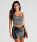 Flaunt your shine girl for a night with this glam corset top featuring a sleeveless sweetheart neckline. adjustable spaghetti straps. built-in padded bust with underwire support. and flexible boning inserts along the fitted bodice. Complete the look in a sleek mini skirt.