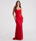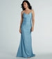 A dramatic train lends swoon-worthy sultriness to the Jamie formal dress - a stunning option for bridesmaids. banquets. and formal dances! She features a sleeveless cowl neckline. adjustable spaghetti straps. a form-hugging fit with a mermaid silhouette. and backside ruching that leads to her floor-length hem with a train. The formal dress is composed of a sleek knit fabric with a subtle sheen effect. Complete the look in this long dress with earrings and a bracelet.