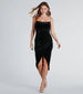 For babes looking to sparkle. the Jaylene formal glitter midi dress is the one! She features a cowl neckline. sleek bungee spaghetti straps that cross in the back. a side ruched seam that accentuates your curves along the bodycon silhouette. and a flirty wrap hem. The formal dress is composed of a shimmering glitter velvet knit fabric with plenty of stretch for comfort. Complete the look in rhinestone heels for a banquet. rehearsal dinner. or fancy date!
