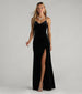 Watch every head turn your way in the Jaymie formal velvet dress showcasing a beautiful silhouette with romantic details! She features a V-neckline. a padded bust. spaghetti straps. a sheer lace back panel with a cutout accent. a mermaid silhouette that flaunts your gorgeous curves. and a high front slit that leads to her floor-length hem. The formal maxi dress is crafted from a luxurious velvet knit fabric that brings simple sophistication to your evening. Complete the look with a rhinestone necklace for a gala dinner or black tie wedding!