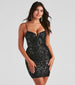 Body-hugging and sparkly. the sultry Jazmin party dress features all-over sequin scroll embroidery sure to make you the hit of the night at prom! She's designed with a sleeveless. sweetheart neckline with adjustable spaghetti straps. a built-in padded bust. underwire support. and a high-waist seam that leads to her form-fitting. mini-length hem. The formal dress is composed of a lined mesh fabric with minimal stretch. Complete your chic look in statement heels.Â