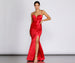 Take yourself out this weekend in the Jessica! She has a sweetheart neckline with a wired v notch detail at the center. padded cups. and spaghetti straps that lead to a lace up detail at the back. Lower back has an opening and a zipper closure with a ruched bottom. Her skirt is a wrap design and is floor length and features a high slit. Fully lined and composed of a satin like material that offers minimal stretch. Stunning!