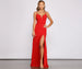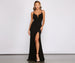 Create a stylish moment with a formal dress that captures hearts from the moment you enter the room! Jianna features a sleeveless V-neckline. adjustable spaghetti straps. and an A-Line silhouette with a high side slit. The dress is composed of a scuba knit fabric that offers a form hugging fit with a moderate stretch. Complete look with rhinestone heels and a rhinestone clutch.
