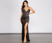 Shine like the night sky in our glamorous Jodie! Her sultry silhouette features glimmering heat stones and a sexy thigh-high slit. Wave your hair out and slip into a pair of rhinestone heels for that extra twinkle!