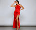 We love a dress that offers glam options. the Johanna dress offers so many ways to dress up for your next special occasion. Johanna features surplus convertible ties at the bodice that can be styled into different necklines that flatter. Her bodice leads to a form of hugging floor-length skirt that is accented with a high side slit. The dress is composed of a stretch satin fabric that offers a moderate stretch. Complete look with a rhinestone choker and bracelet.