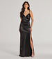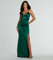 Flaunt a show-stopping silhouette in the Jordyn formal long dress designed with silky satin fabric for a luxe allure. The gorgeous mermaid silhouette is accented with a high front slit and a delicate train for an added touch of romance.