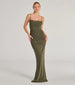 The Julane mesh long formal dress offers femme detail with lace trim and ruching to enhance your curves along the column silhouette. Style with earrings.