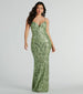 The Julissa V-neck sequin mesh mermaid dress will captivate the room with her glam perfection at dances. galas. or soirees! Crafted from a sheer mesh fabric with a full-length lining. she is accented with gleaming sequin embroidery in a luxe scroll pattern for that enchanting look. Her bodice is shaped with a sleeveless sweetheart neckline with a structured bust for support and adjustable spaghetti straps for a perfectly customized fit. Her cascading floor-sweeping mermaid silhouette will flaunt your stunning curves. Complete the look with rhinestone fringe earrings and stiletto heels for a dazzling vibe.