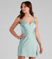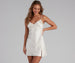 Clearly. you're the queen of the jungle in this leopard satin mini! It features sleek. adjustable spaghetti straps. a v-neckline. and a slightly flared hem with a slit accent. Composed of a luxe satin-lined fabric with no stretch. Style with chic block heels.