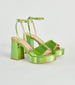 And just like that these chrome platform heels will appear in your cart! They feature an almond toe. wide toe strap. ankle strap with buckle closure. and a block heel. Style with a sassy party dress for a celebration or bachelorette!