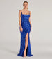 Embellished with light-catching sequins. the Kailani formal long dress is sure to stun at school dances and black tie soirees! She features a square neckline. adjustable spaghetti straps for a customizable fit. a mermaid silhouette that hugs your curves. and a high front slit and graceful floor-length hem for a touch of sultry. The formal maxi dress is crafted with a sequin scroll pattern on mesh fabric and has a full stretchy knit lining. Complete the look in platform heels.