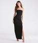 Simply chic. the Kaisley formal dress will bring a stylish sophistication to any special event! She features a strapless straight-across neckline with a fold-over design. princess seam accents. a floor-length hem with a high side slit to showcase some leg. and a curve-hugging silhouette. The crepe fabric includes a full-length knit lining and offers a moderate stretch. Complete the look with strappy stilettos.
