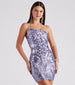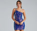 Catch the dance floor lights in the Karla sequin party dress and mesmerize the room in her dazzling arora! She features a sleeveless. one-shoulder design with an adjustable spaghetti strap. built-in padding. a bodycon silhouette. and a short hem. Composed of an iridescent sequin mesh-lined fabric with minimal stretch. Style with rhinestone earrings and heels.Â