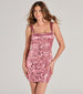 Make a bold and beautiful statement in the Kassandra sequin satin mini dress at prom or banquets! Crafted from silky satin fabric. this dress is embellished with a floral sequin pattern that shines under any light. Â Designed with a square neckline. padded bra cups. and shoulder straps. this dress flatters your figure with a bodycon fit and mini-length hem. Complete the look with a clutch and heels.