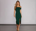 Keep your look simply elegant and polished in our essential Kate dress! She features an off-the-shoulder neckline. a fold-over accent. and princess seams leading to her figure-flattering midi-length silhouette with a sultry side slit. The dress is composed of a crepe fabric that offers a moderate stretch. Complete your look with a sleek clutch and rhinestone earrings.