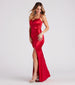 You'll absolutely love the silky-chic look of the Katelyn ruched satin mermaid dress! She features a sleeveless V-neckline with a notched front design. pleating at the bust. and adjustable spaghetti straps that lead to a cross-back design. She has a high waist seam. a floor-length hem. a faux wrap-front skirt with ruching and a high slit. and a form-hugging. mermaid silhouette. The satin fabric offers a moderate stretch. Complete your gorgeous formal outfit with a pair of strappy stilettos.