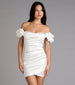 Effortless romance. redefined. The Kathrin mini dress stuns with its off-shoulder satin neckline and sculpted ruching. finished with soft puff sleeves that bloom like petals. Equal parts flirty and refined—it's made for the moments that call for a little extra magic.