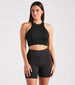 Keep your everyday 'fit cute and casual with a tank top that offers a seamless. comfortable. body-contouring fit. This sleeveless tank features a scoop neckline. a cropped hem. and is composed of a ribbed knit fabric that offers a four-way stretch. Style with the matching biker shorts for lounging or running errands!