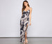 Keep your summer look groovy and on-trend with this tie-dye maxi dress! It features a sleeveless V-neckline. spaghetti straps that lead to a cross-back design. a high waist seam. and a floor-length silhouette with a thigh-high side slit. Style this dress with strappy sandals for a laid-back vibe.