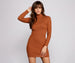 Keep your look cozy and chic in this mini sweater knit dress! It features a trendy mock neckline. long fitted sleeves. and a short. curve-hugging silhouette. Pair this dress with thigh-high boots for an adorable date night 'fit.