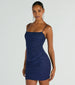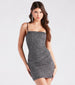 This glitter crepe mini dress is your key to sparkle all night long! The dress features a sleeveless square neckline with spaghetti straps. and a side pleated seam to give you an hourglass appearance along the bodycon silhouette. Complete the look with a chic choker and heels.