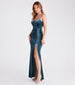 A timelessly glamorous style for bridesmaids or wedding guests. the Kierra Formal Glitter Velvet High Slit Dress brings sophistication and elegance. She features a sleeveless sweetheart neckline with a wired insert. bungee spaghetti straps. a padded bust. and a back cutout with a hook-clasp closure. Her front ruched seam and high front slit provide an alluring texture. while the long-length hem and A-line silhouette promise a flattering fit. Glittering velvet knit fabric offers the perfect sparkling touch and has a bust lining and moderate stretch. Complete the look in a necklace and earrings set.