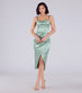 Create a timeless look that exudes chic in the Kiley satin midi formal dress perfect for bridesmaids. wedding guests. or banquets. Made from a silky satin fabric. the formal dress features a flattering cowl neckline. a form-hugging faux wrap silhouette that accentuates your curves. and a front slit design. Pair with strappy heels.