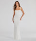 Grace the room in the Kimia long column dress that is crafted with all-over beaded embroidery in a detailed swirl pattern on the lined mesh fabric. It features a sleeveless square neckline with a padded bust. thin adjustable shoulder straps. a bold open-back design with lace-up straps. and a floor-sweeping column silhouette to showcase your stunning curves.