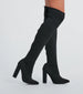 This thigh-high boot is for every kn" it" girl! It features a sleek pointed toe. block heel. and a thigh-high shaft height on knit material. Complete the look with a chic sweater dress for a dinner party or date night!