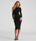 This crew neck midi dress will be pleased to be added to your fashion closet! It features long fitted sleeves. a form-hugging silhouette. and a front knot accent at the waist. The slinky knit fabric offers a moderate stretch. Complete the look with strappy heels.