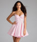 Playful and pretty. the Kristiana short dress boasts a flirty-chic design with lace trim. hidden side pockets for stashing your phone. and a voluminous A-line silhouette.