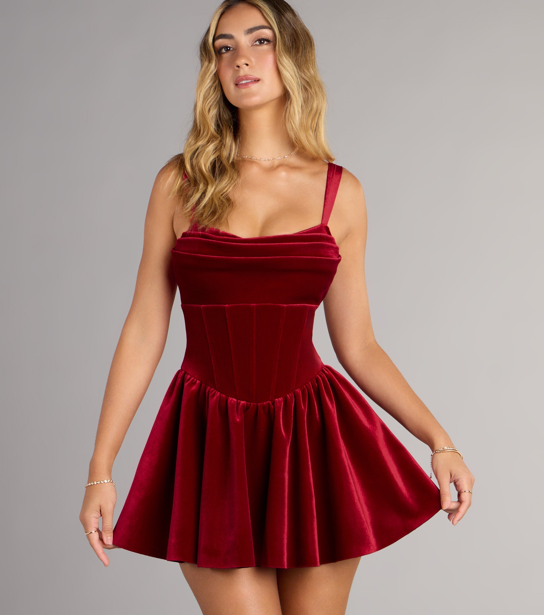 Decadent and daring. the Kyla velvet corset skater dress is made for entrances that stop the room. With its sculpted bodice. open back. and twirl-ready skirt. it delivers luxe drama for making an entrance.
