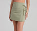 Lace yourself up in this chic mini skirt! It features a high-rise waist and a front flap with dual side tie closure. Composed of crepe knit fabric with a moderate stretch. Finish the look in a basic bodysuit and cabby hat.