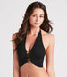 Every girl needs her stylish basic bralettes to create all of their cute outfits! The rib knit seamless bralette features a halter plunge neckline with tie-back straps. a front lace-up design. a fitted hem. and a partially open back. The lightweight knit fabric offers plenty of stretch. Layer under a sweater or oversized top with skinny jeans to complete the look!