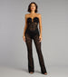 A jumpsuit perfect for nights that call for a little extra drama. The strapless lace bodice with lace-up detail showcases your shape. while the flared legs and semi-sheer finish keep it effortlessly glamorous.Â