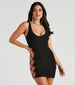 Heat up the night in this bombshell sleeveless mini dress featuring v-neckline. tank-style straps. a bodycon silhouette. and a cutout side with lace-up straps. Perfect for styling with strappy stiletto heels.