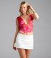 • Abstract floral print. mesh fabric. sewn-in knit lining