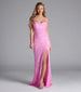 Elegantly constructed from a sequin embellished mesh fabric. the Lani formal dress exudes sparkle and pretty details that'll be the talk of the party! Show off some skin with the lace-up back design and high front slit while the mermaid silhouette flaunts your figure.