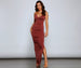 Keep it fabulous in a ruched formal dress that hugs all your curves in the right places. Larissa features a sleeveless wrap V-neckline. adjustable spaghetti straps. ruched side seams. and a high side slit. The dress is composed of a lined smooth knit fabric that offers a form hugging fit with a moderate stretch. Complete look with block heels and a satin clutch.
