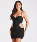 Look flawless all night in this mesh mini-dress! It features a sleeveless sweetheart neck. a rhinestone embellished halter strap. a ruched padded bust with underwire. side cutouts with rhinestone straps. ruched seams. and a bodycon silhouette. The lined mesh fabric offers a moderate stretch. Complete the look in statement heels.