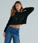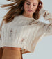 The perfect cable knit sweater for latte meet-ups and other plans that involve coffee! It features long sleeves. a crew neck. distressed accents throughout. and a cropped hem on cozy cable knit fabric. Complete the look in a sleek mini skirt and boots!