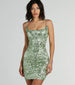 Sequins and satin come together on the striking Laurita party dress to make your fabulous entrance into prom or birthdays! Be the center of attention in this dress designed with a stunning sequin scroll pattern on satin fabric adding a touch of glamour to this mini-length party dress. She features a sleek square neckline. adjustable spaghetti straps for a custom fit. a flirty lace-up back. and a bodycon silhouette that will hug your curves in all the right places! Complete the look in sassy platform heels and jewelry!