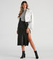 You'll be living lavishly in your new must-have satin midi skirt perfect for dinner parties and celebrations! The skirt features a sleek high-rise waist. a side zipper and hook and eye closure. a hip-hugging fit with a flowy A-line silhouette. and a high-cut side slit. Complete the look in a crop sweater and heels!