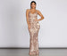 Have the time of your life and dance the night away in our Layla! She features a v neckline. adjustable spaghetti straps that lead to a square back with a zipper closure. She features a cup stitching at the bodice and a subtle banded waist line. She has a mini skirt lining that is sewn in place which makes her easy to move around in. and a floor length mermaid hemline. She is composed of a mesh material that offers a form fitting silhouette with slight stretch. that showcases a beautifully detailed geometric and floral sequin pattern!