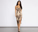You'll be the stylish leader of your trendy squad in this leopard print satin midi! Pair the dress with some sleek booties and layer on a faux leather jacket!