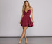 Hit the dance floor and take our satin Leandra for a twirl! She features a skater-style silhouette. a seamed bodice with deep V neckline. crisscross spaghetti straps with lace-up ties. a back zip with cutout detail. and a flowy A-line skirt. Leandra is fully lined and made from a smooth. shiny woven material with a touch of stretch.Â